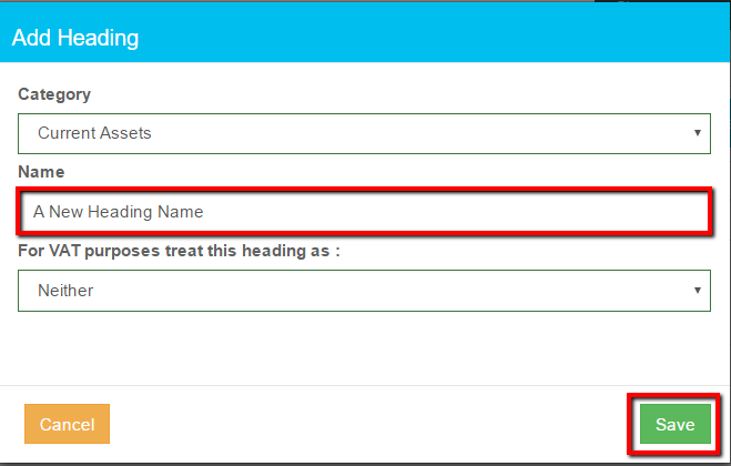 Click Settings Click Headings Select Income Click Add Heading Enter a heading in the Name box Click Save Notes: A quick add heading is available in Record income and Create invoice, initially Headings added this way appear at the bottom of the list
