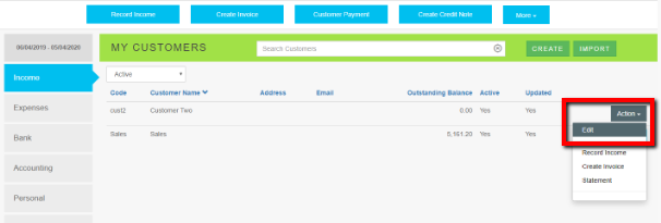 To edit a customer account click ACTION icon and select Edit.