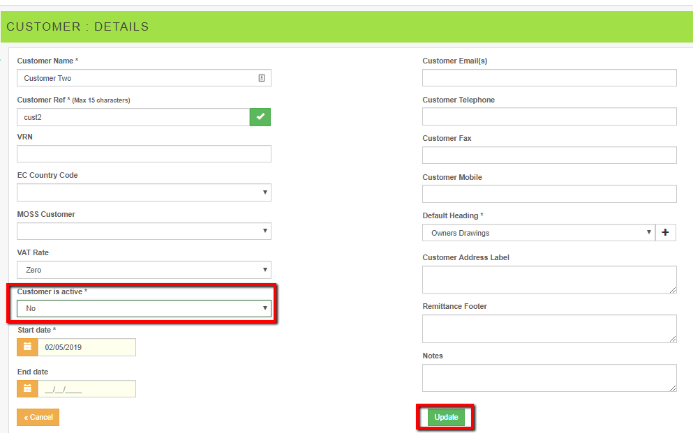 Otherwise a customer can be deactivated via the Edit option
