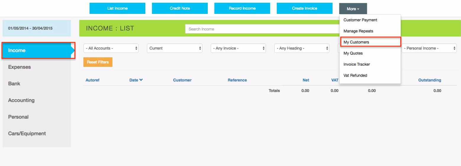 - Click Income