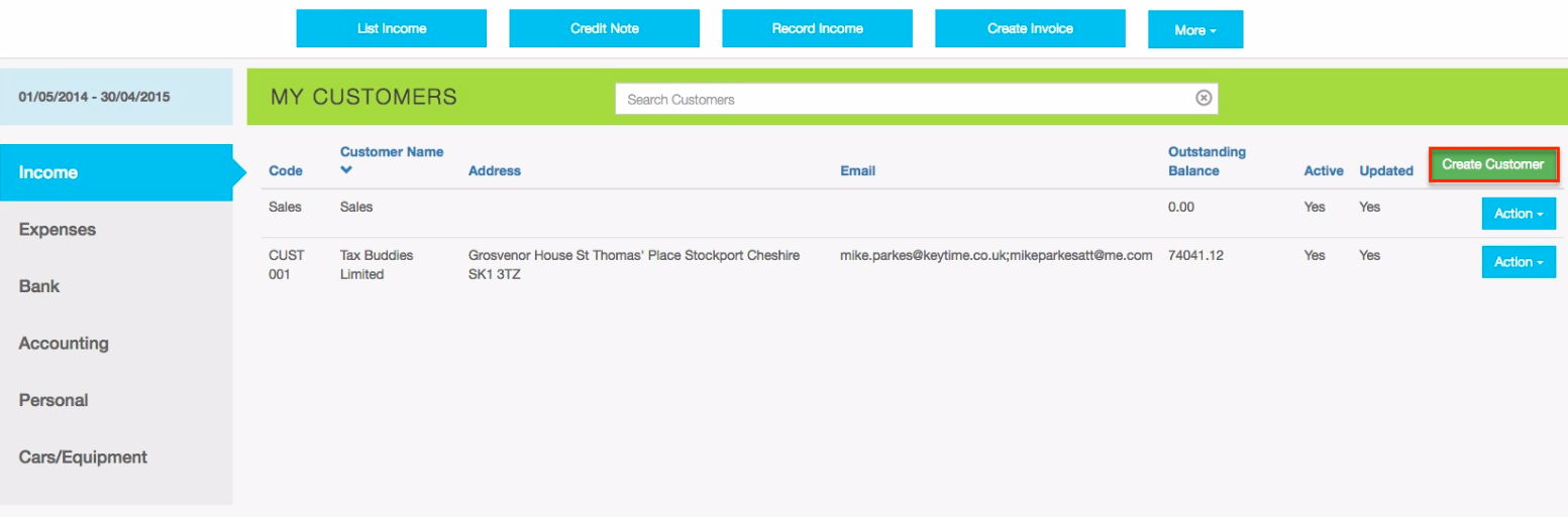 - Click Create Customer