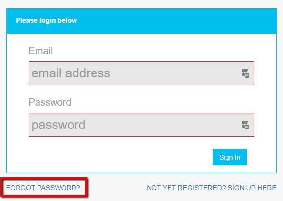 On the login screen click FORGOT PASSWORD Enter login email address, click Reset Password An email will be sent with a link to allow a new password to be entered