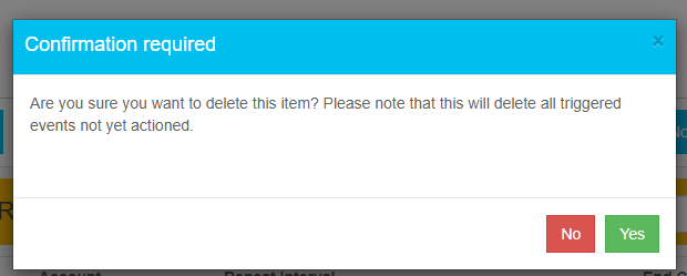 Note: Triggered events that have not yet been actioned (Settings,Accept Repeat Transactions) will be removed.