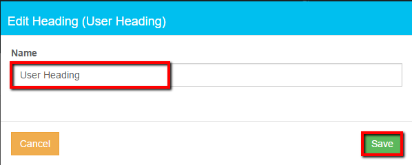 - Click Edit against the user created heading to be amended. System headings cannot be changed.