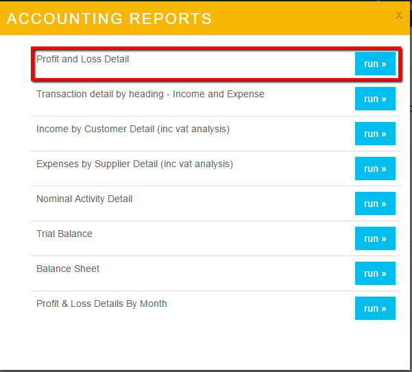 - Click Profit and Loss Detail and run.