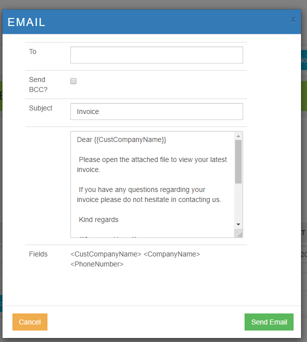 - When finished, click send email and the system will send a copy of the invoice as a PDF attachment.