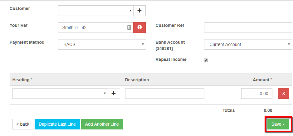 - Enter details of the repeating income, when complete click Save