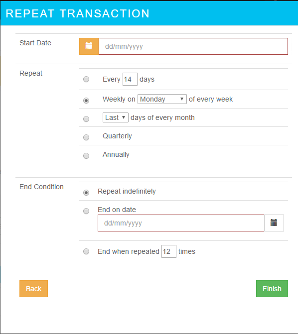 - Enter the criteria for the repeat transaction