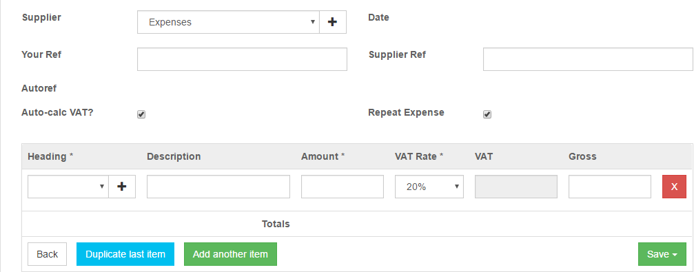 Note: Add a text reference in Your Reference and Supplier's reference boxes when entering details. These are optional