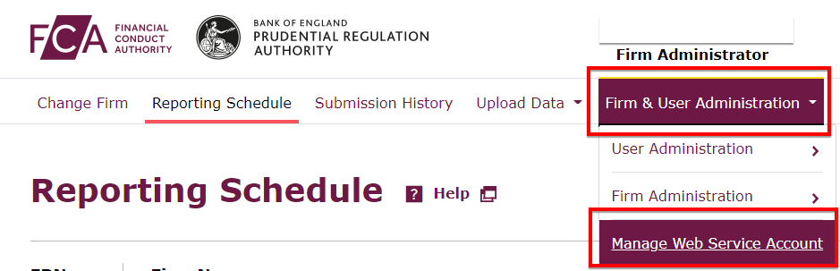 - Click Firm & User Administration, followed by Manage Web Service Account