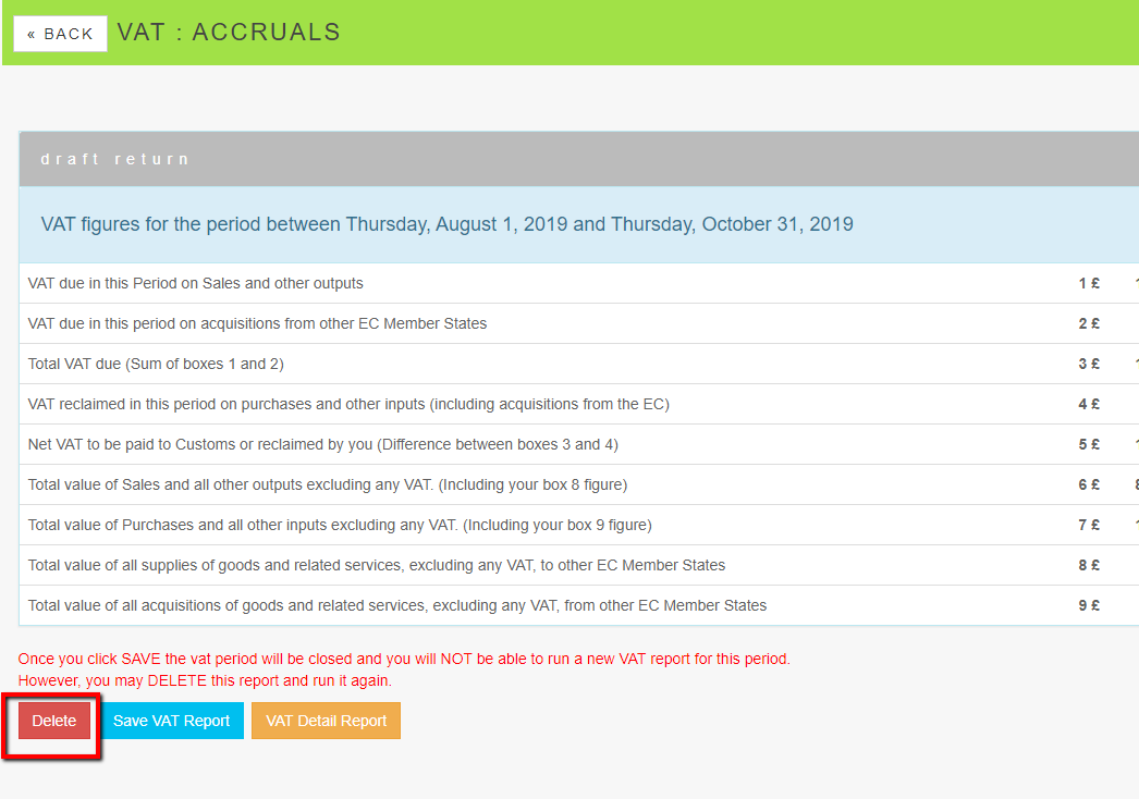 MTD Dashboard - How do I delete an MTD VAT return that has not been submitted?